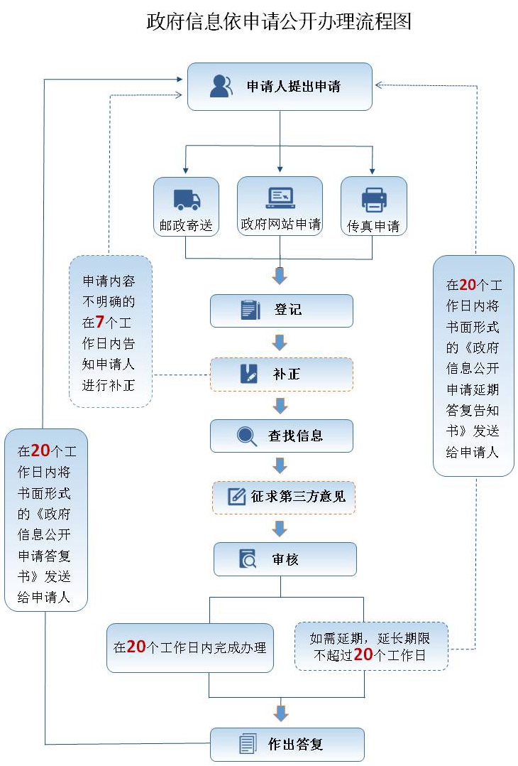 2.本机关将自收到申请之日起20个工作日内作出申请答复。需要延长答复期限的,在答复期限内告知申请人,延长的期限不超过20个工作日。